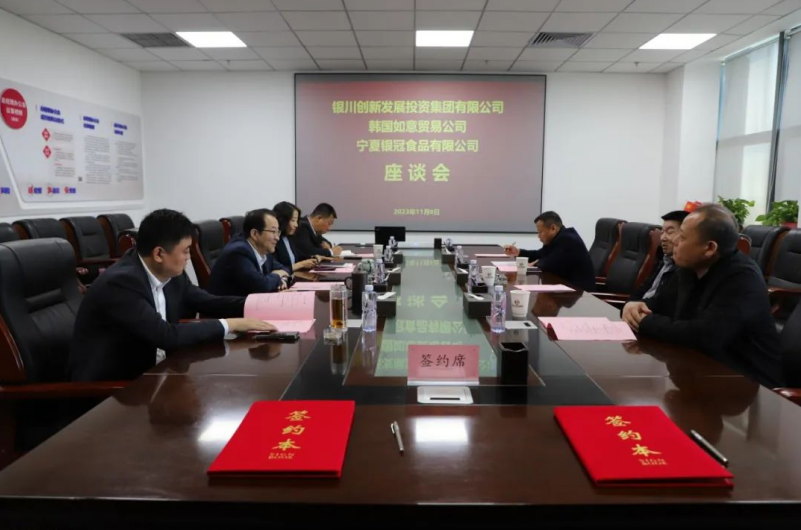 11月9日上午,銀川創(chuàng)投集團(tuán)黨委書記、董事長何曉銳在集團(tuán)會見了前來拜訪的韓國RURI TRADING COMPANY(如意貿(mào)易公司)中國區(qū)代表李鐘明一行,并現(xiàn)場見證集團(tuán)旗下寧夏銀冠食品有限公司與韓國如意貿(mào)易公司簽訂1000萬美元的優(yōu)質(zhì)冷涼蔬菜外貿(mào)銷售協(xié)議,助力寧夏優(yōu)質(zhì)蔬菜邁向國際。集團(tuán)公司總經(jīng)理王麗梅、副總經(jīng)理莊昊、綜投公司總經(jīng)理馬曉偉、銀冠食品公司總經(jīng)理李紅兵等參加簽約會議。